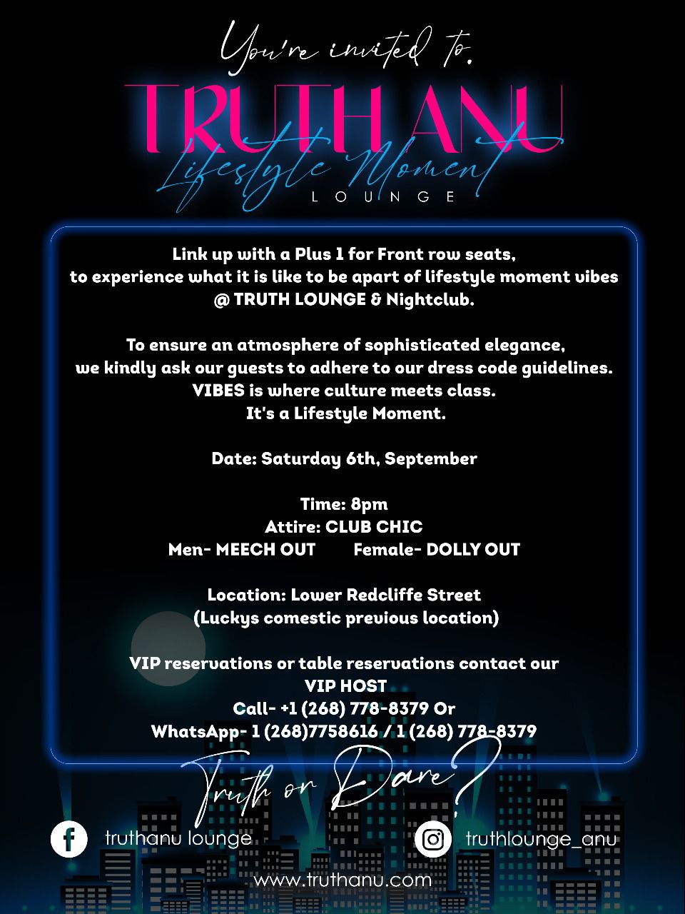 At Truth ANU Lounge & Nightclub, we believe that dressing well is a form of good manners. To ensure an atmosphere of sophisticated elegance, we kindly ask our guests to adhere to our dress code guidelines. VIBES is where culture meets class.